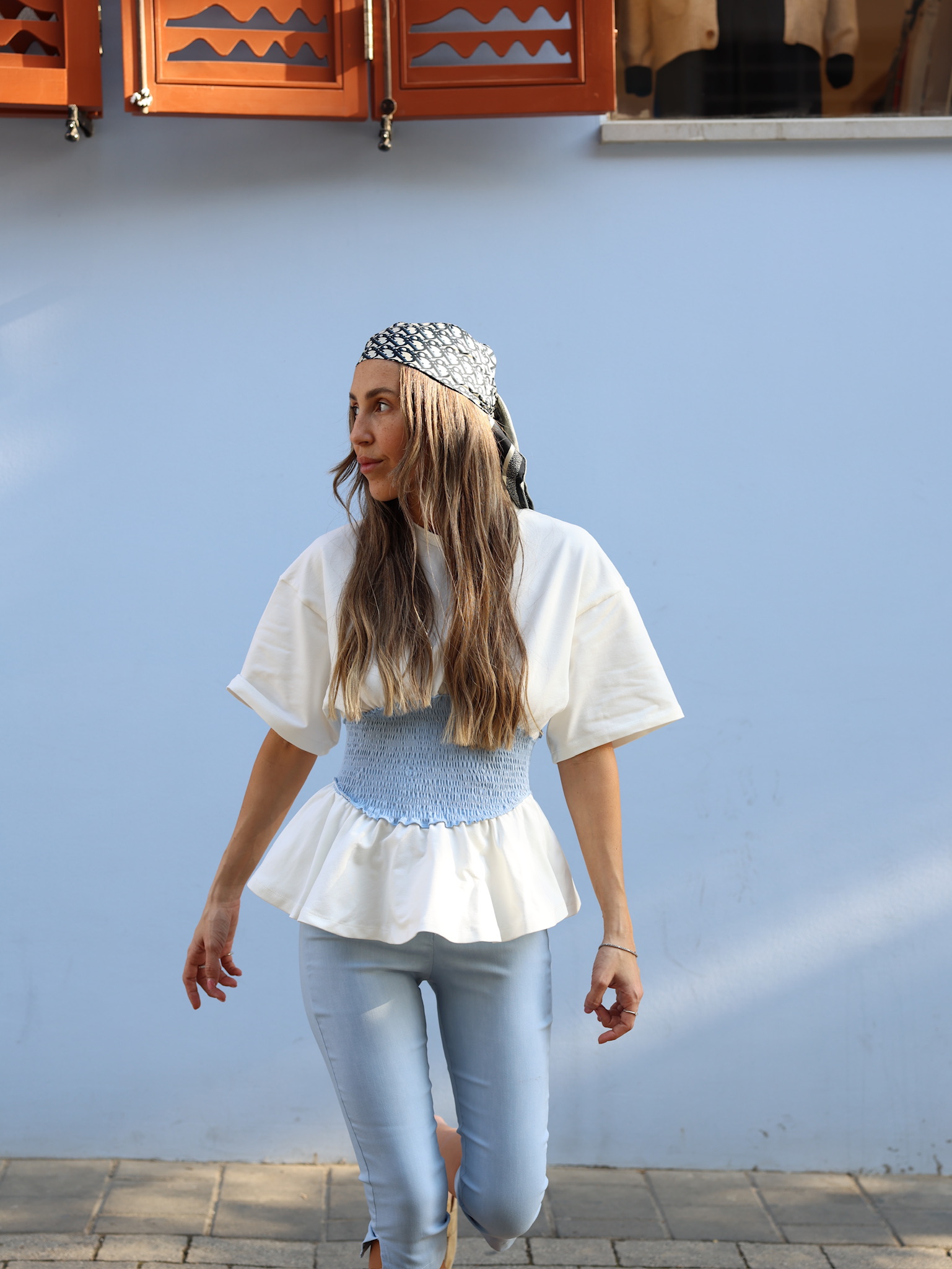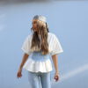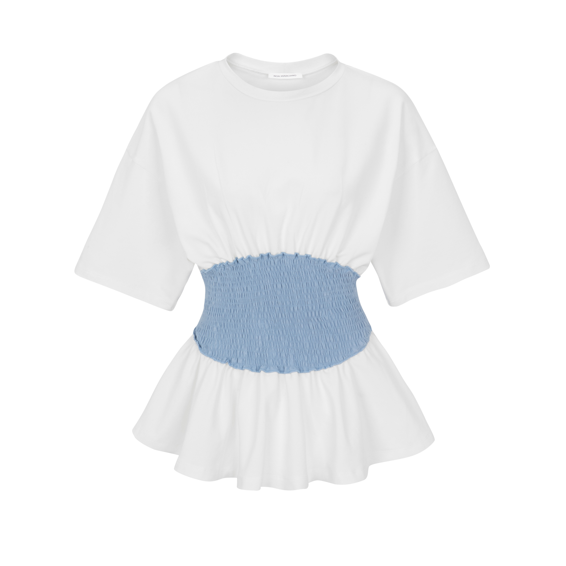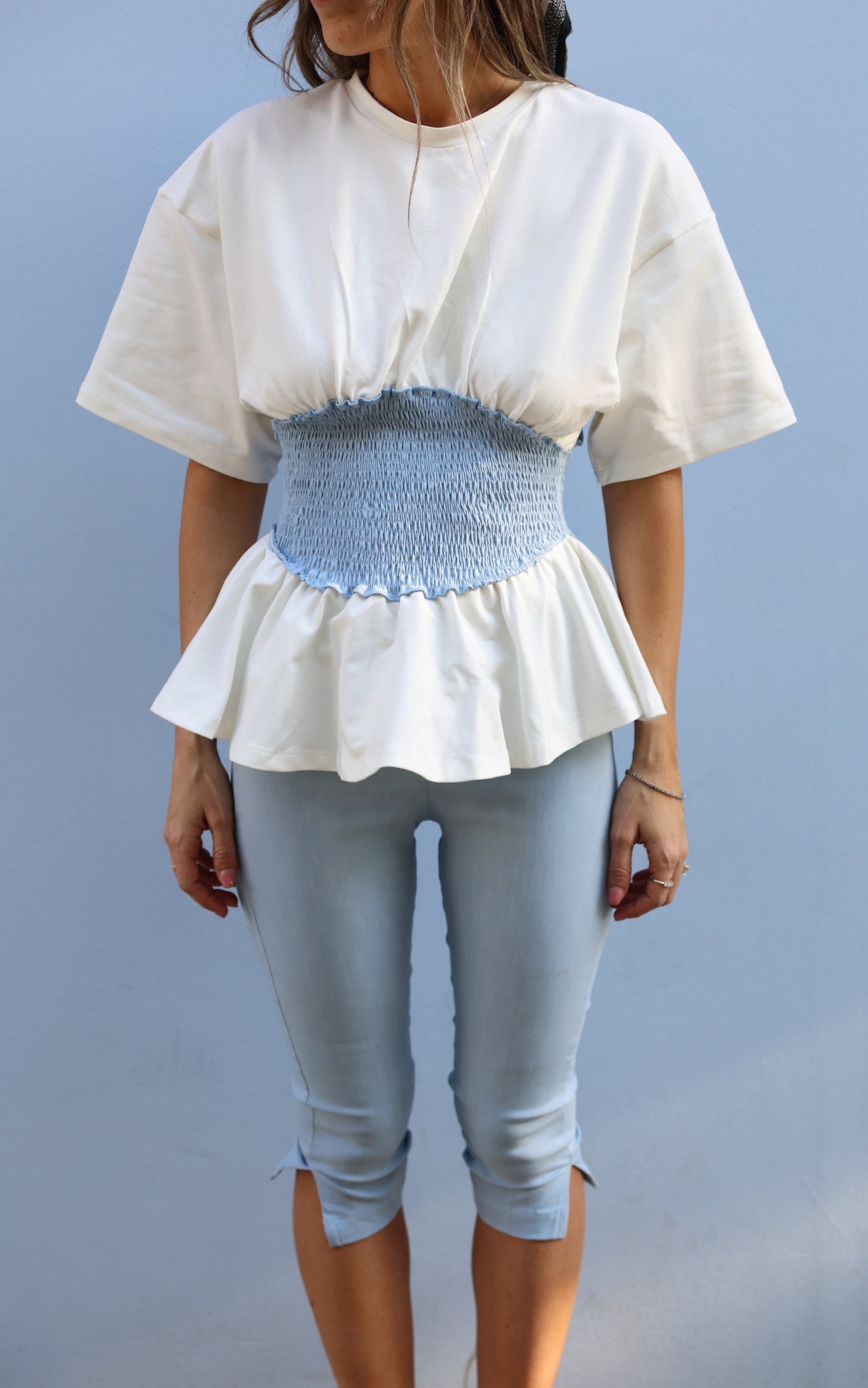 חולצה טי שירט מבד פרנץ טרי דק עם כיווצים במותן מבד מחויט.