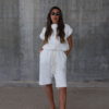 מכנס באורך 7/8 מבד פרנץ טרי דק עם גומי במותן.