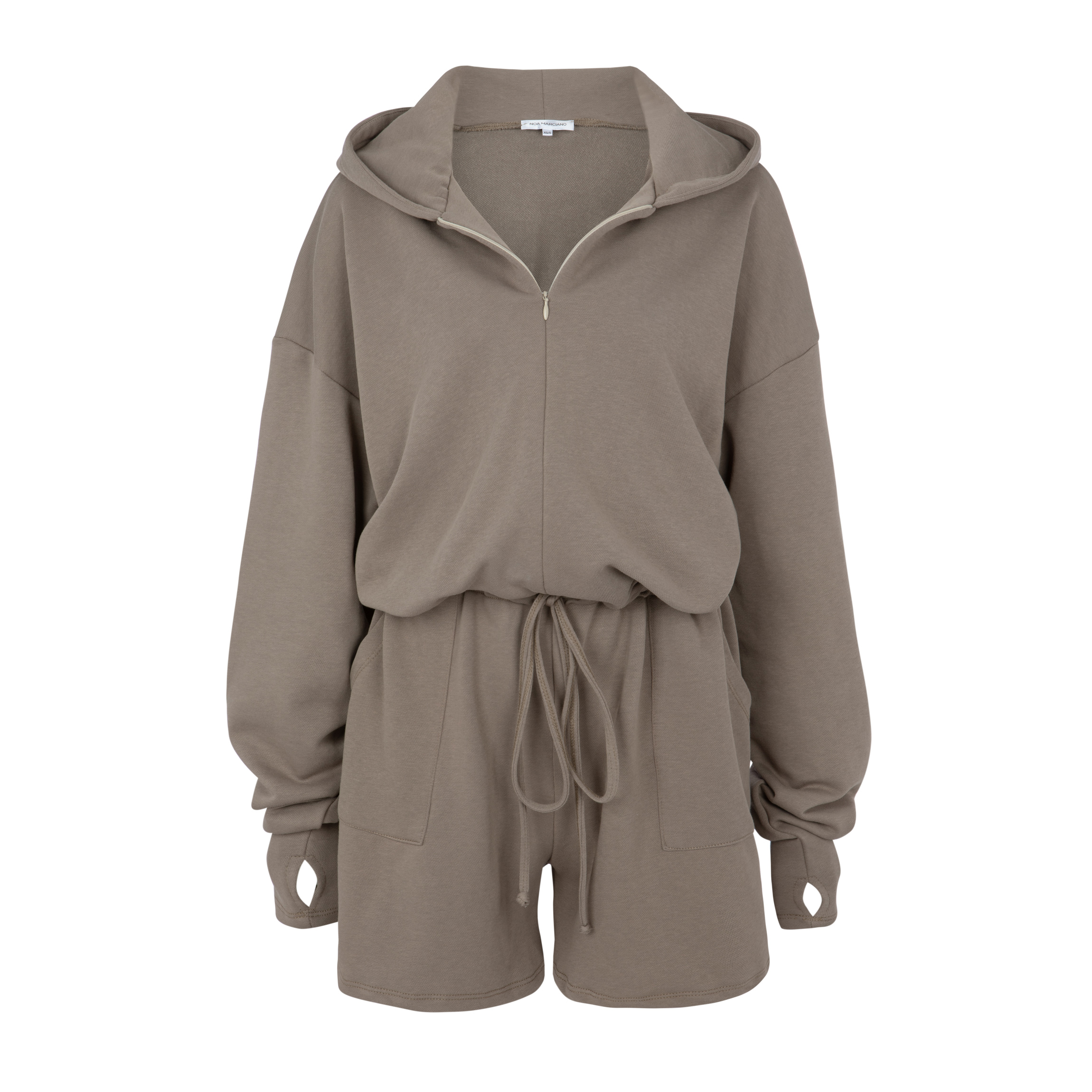 אוברול קפוצ'ון עם שרוול ארוך עם פתח לאצבע, עם רוכסן וקשירה במותן