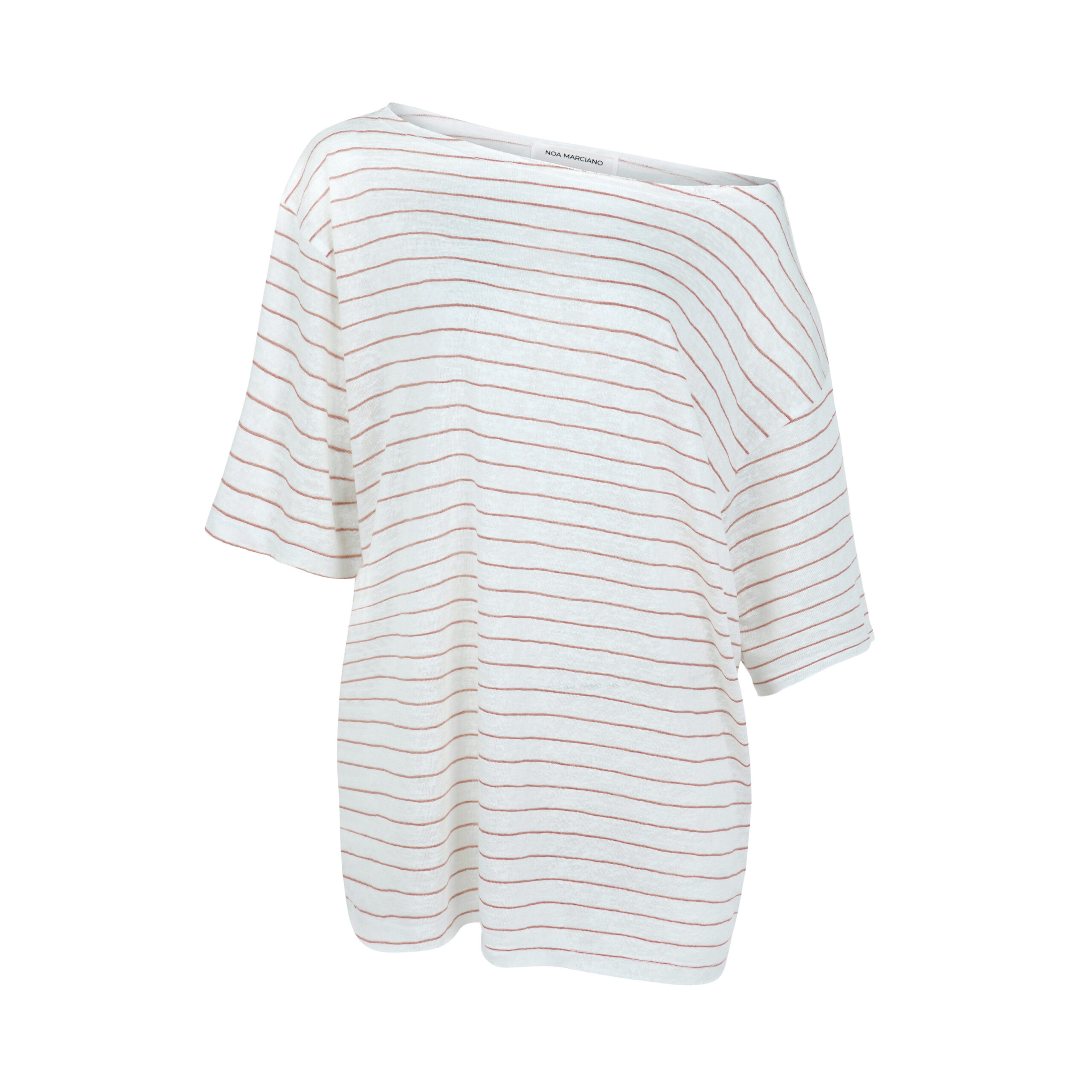 חולצת טי שירט מבד דק וקליל עם מחשוף גדול לחשיפת הכתף וסיומת גזורה