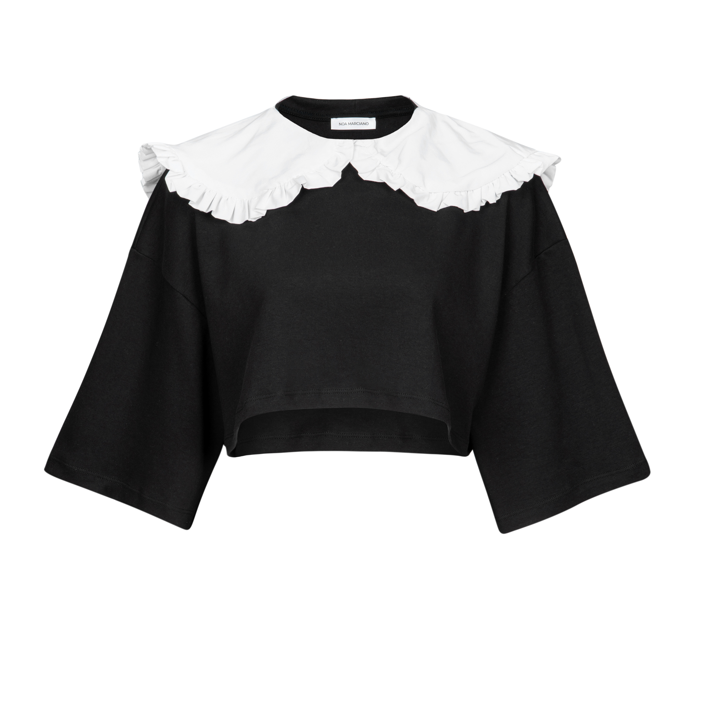 חולצת קרופ אוברסייז מבד עבה ואיכותי עם צווארון מבד מחויט.