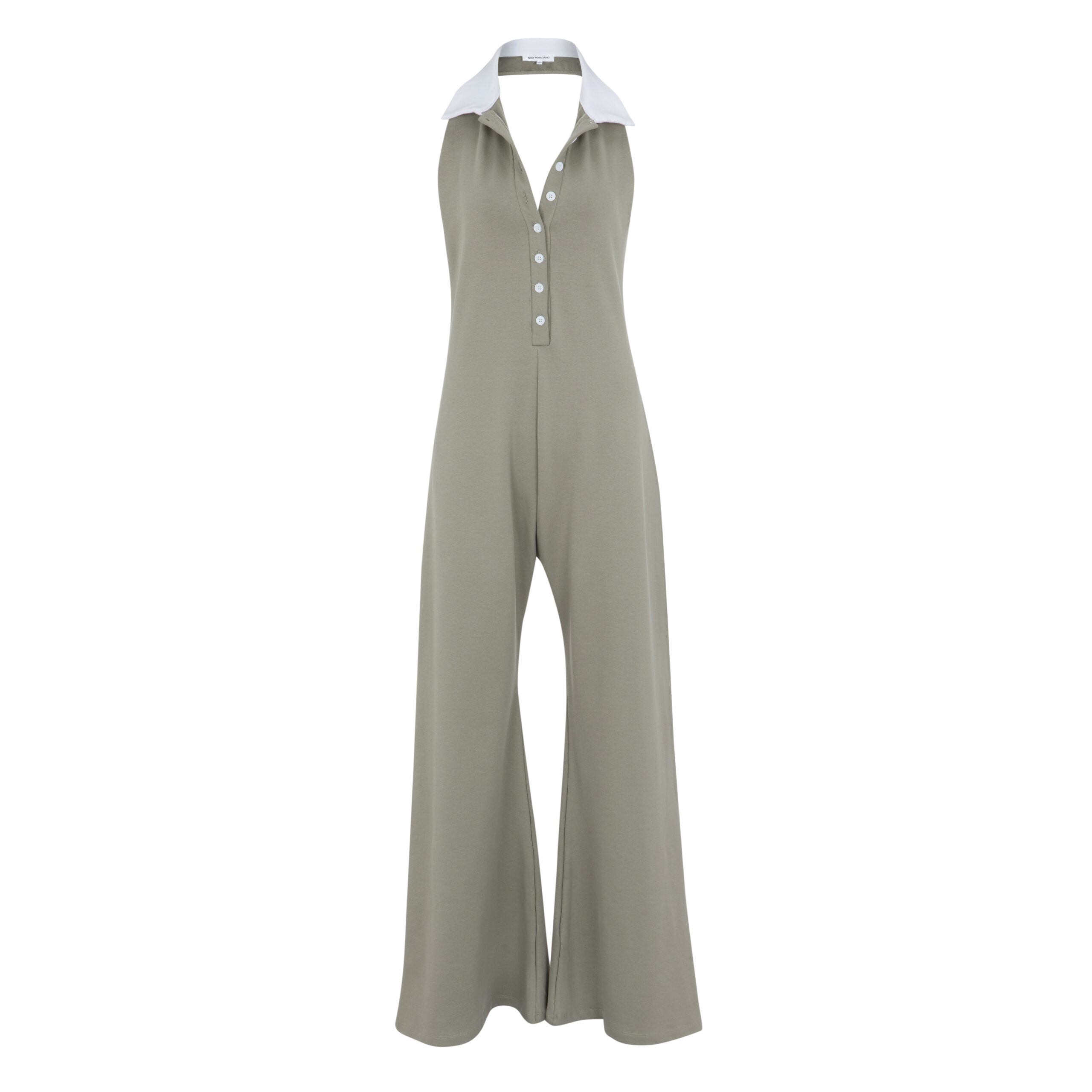 אוברול קולר מבד פרנץ טרי דק עם צווארון בסגנון פולו וגב פתוח.