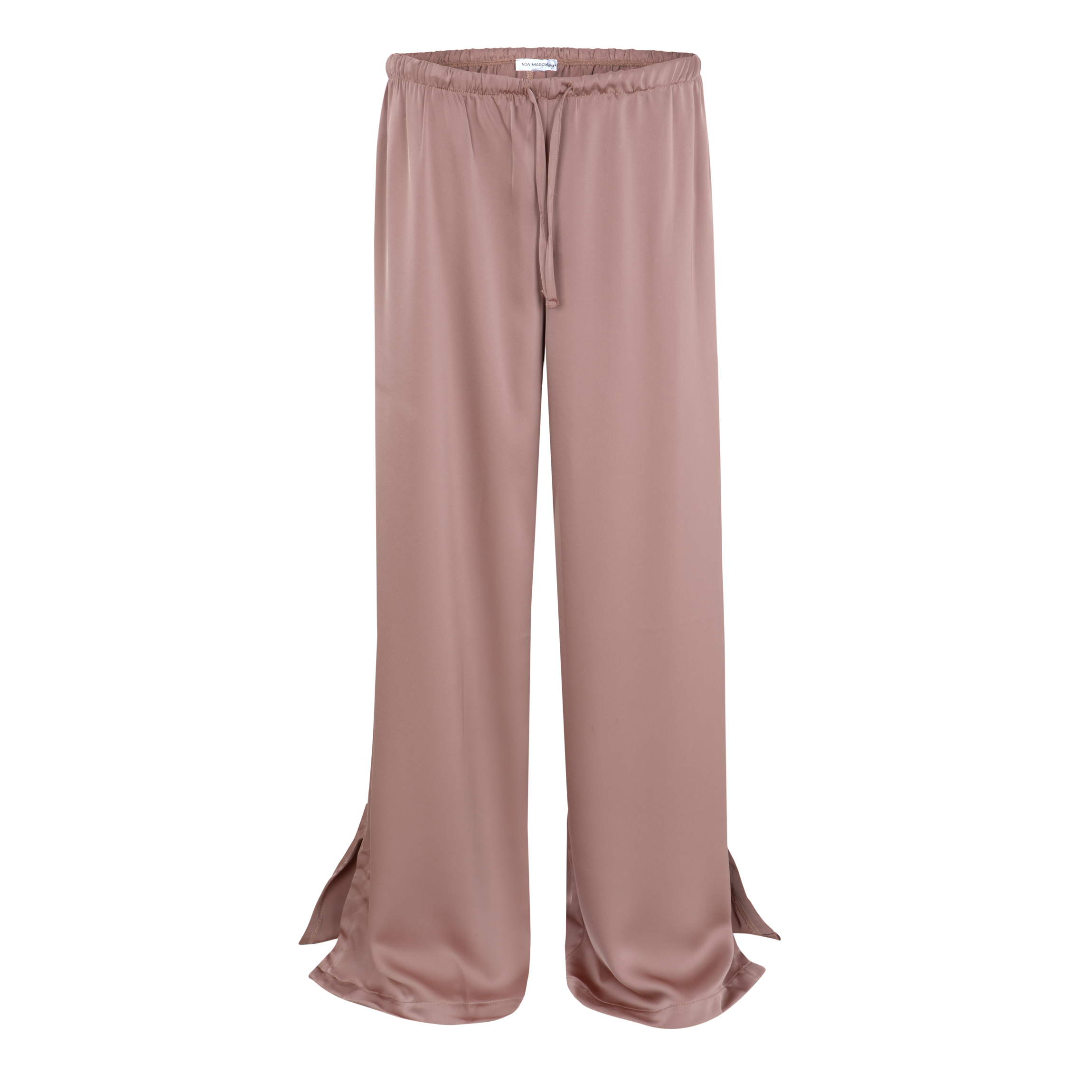 מכנסיים ארוכים מבד סאטן עם גומי במותן ושסע צדדי